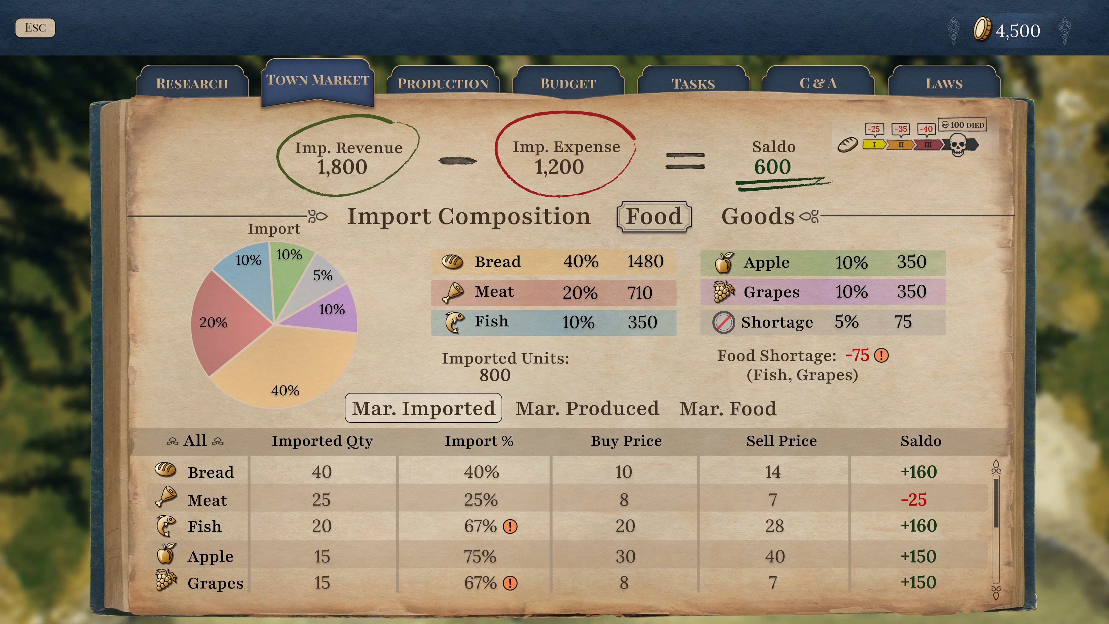 Town Market will be always in players attention, and will always show the results of short and long term decisions.