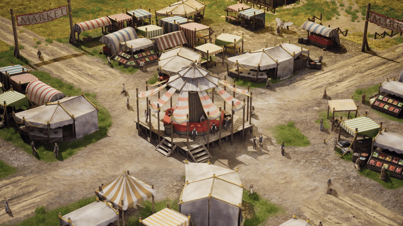The Town Market is a large and highly important building that allows nearby citizens to purchase the goods they need for: